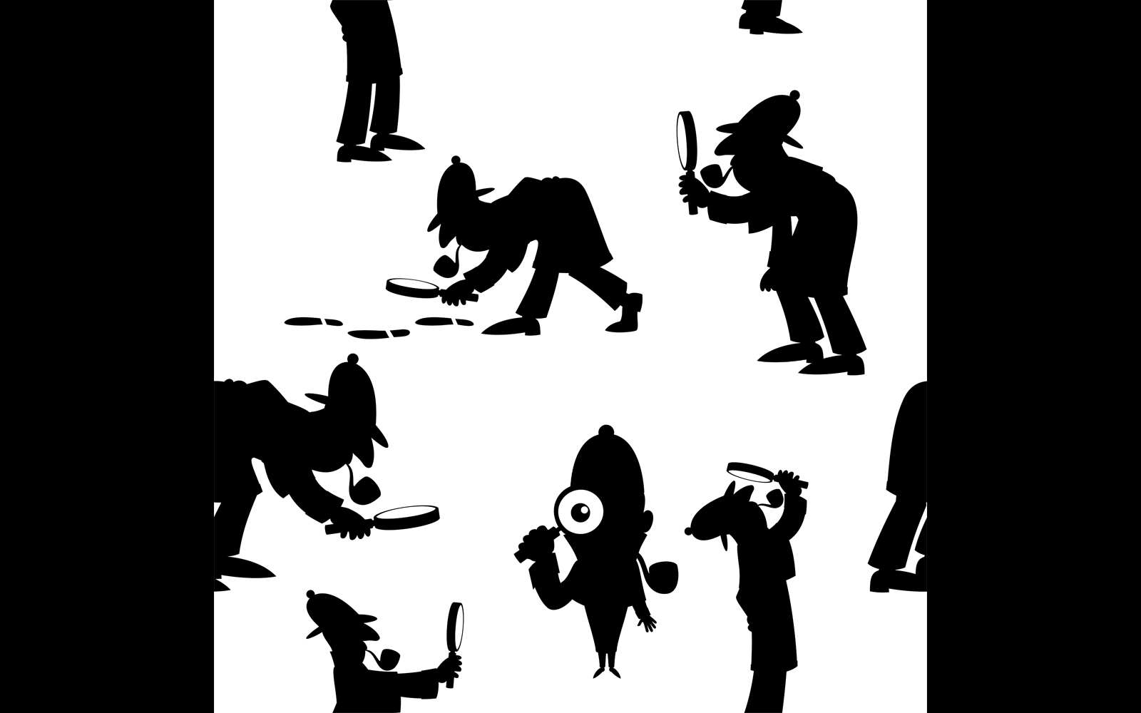 Download Иллюстрация "Detective Silhouettes Pattern - Illustration" / Detective Silhouettes Pattern - Illustration - Иллюстрация на тему графика detective,investigator,sleuth,private eye,private,eye,sherlock holmes,police,officer,inspector,cartoon,silhouette,pattern,seamless,tile,set,pack,crime,mystery