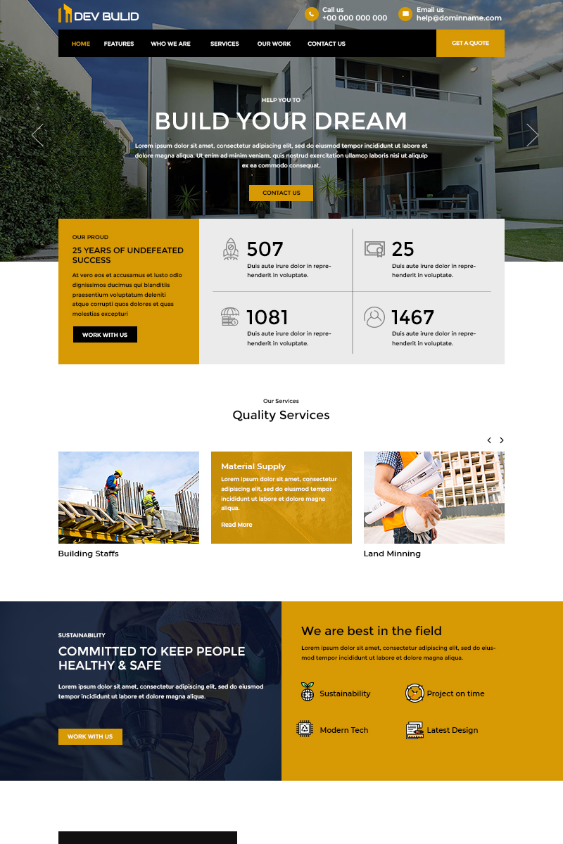 Download PSD шаблон "Dev Build - Construction Company PSD Template" / Dev Build - Construction Company PSD Template - PSD шаблон на тему графика construction company template theme psd photoshop