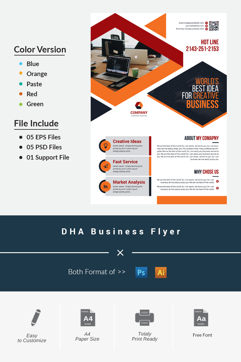 Download Фирменный стиль "DHA Business Flyer - Corporate Identity Template" / DHA Business Flyer - Corporate Identity Template - Фирменный стиль на тему графика flyer corporate liflet computer internet stationery poster id kit blue hi-quality official sample business logo professional modern art standard creative