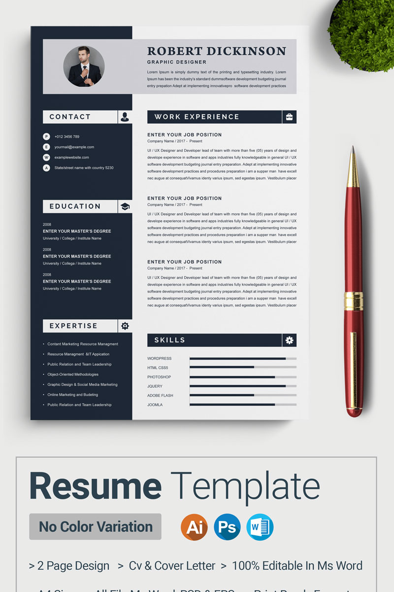 Download Резюме "Dickinson Resume Template" / Dickinson Resume Template - Резюме на тему графика 2 page a4 clean cv design elegant resume female feminine infographic letter minimalist modern portfolio professional indesign minimal pages