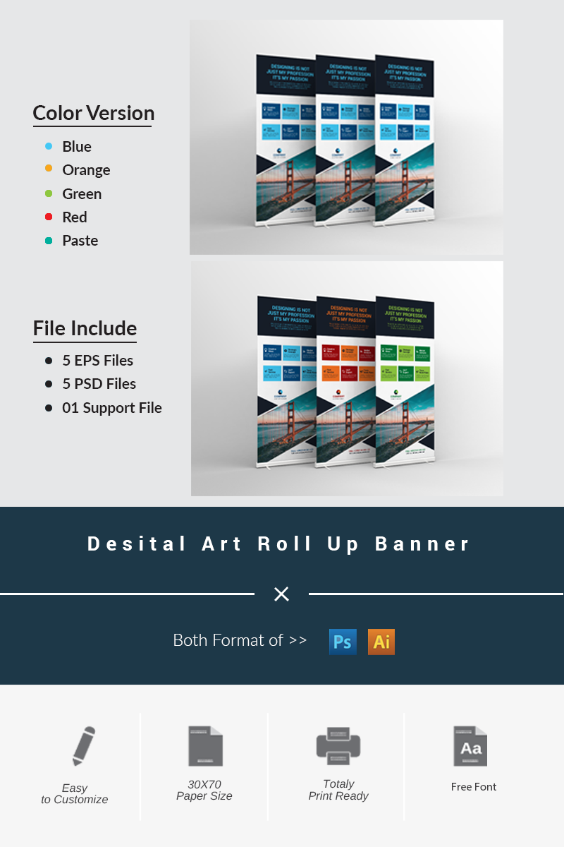Download PSD шаблон "Digital Art Roll Up Banner PSD Template" / Digital Art Roll Up Banner PSD Template - PSD шаблон на тему офис art artistic blue building business rollup colorful corporate corporet creative graphics green hi-quality id kit internet logo modern multimedia official