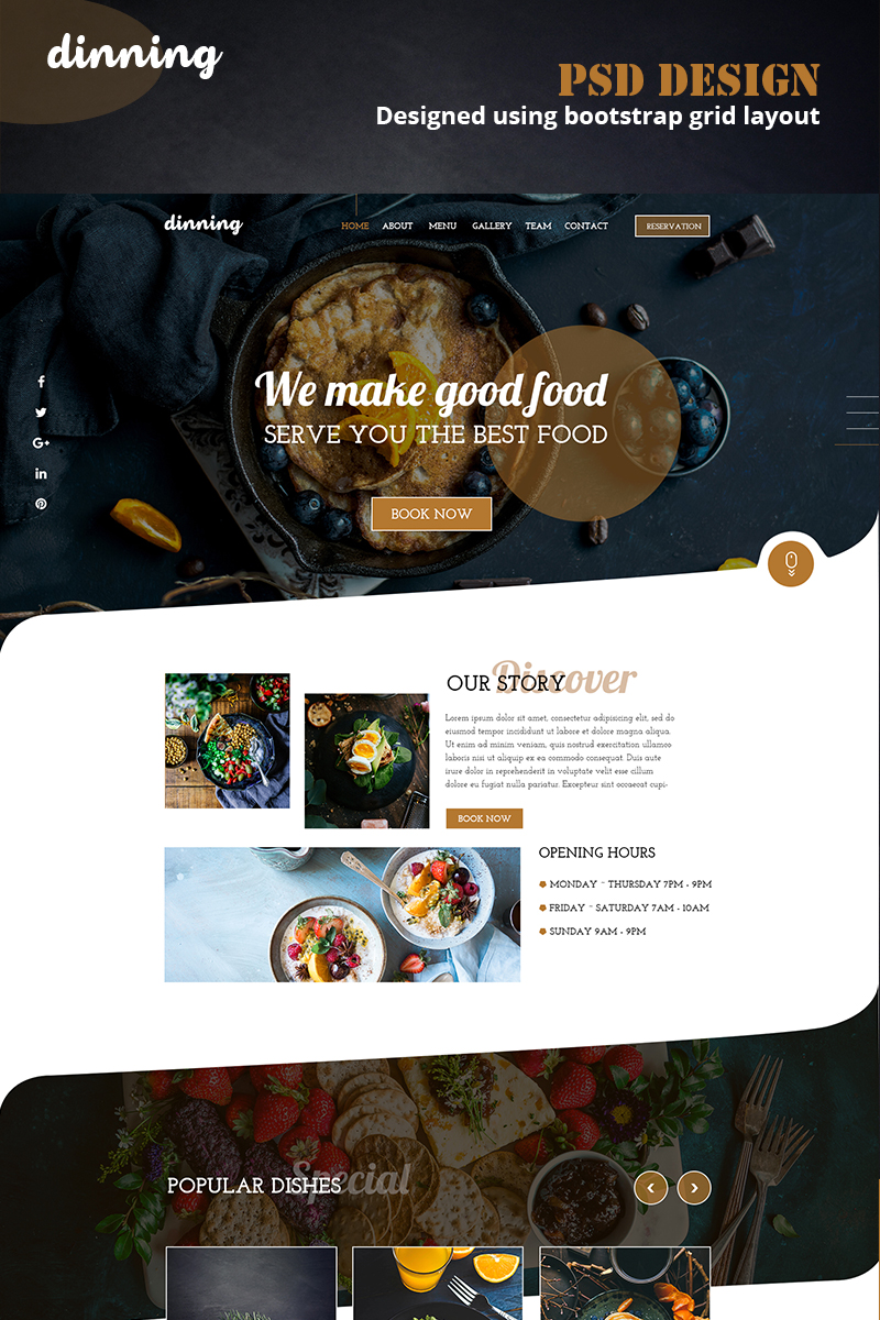 Download PSD шаблон "Dinning PSD Template" / Dinning PSD Template - PSD шаблон на тему графика food foodies restaurant cafe dish meal wine tasty recipe cocktail dinner reservation cuisine waiter specials veg psd photoshop lunch