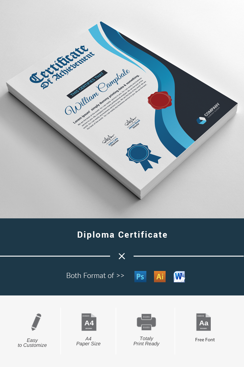Download Шаблон сертификата "Diploma Certificate Template" / Diploma Certificate Template - Шаблон сертификата на тему графика achievement award background border certificate coupon diploma engraved engraving frame guilloche multipurpose pantone professional protected rosette secure security paper two