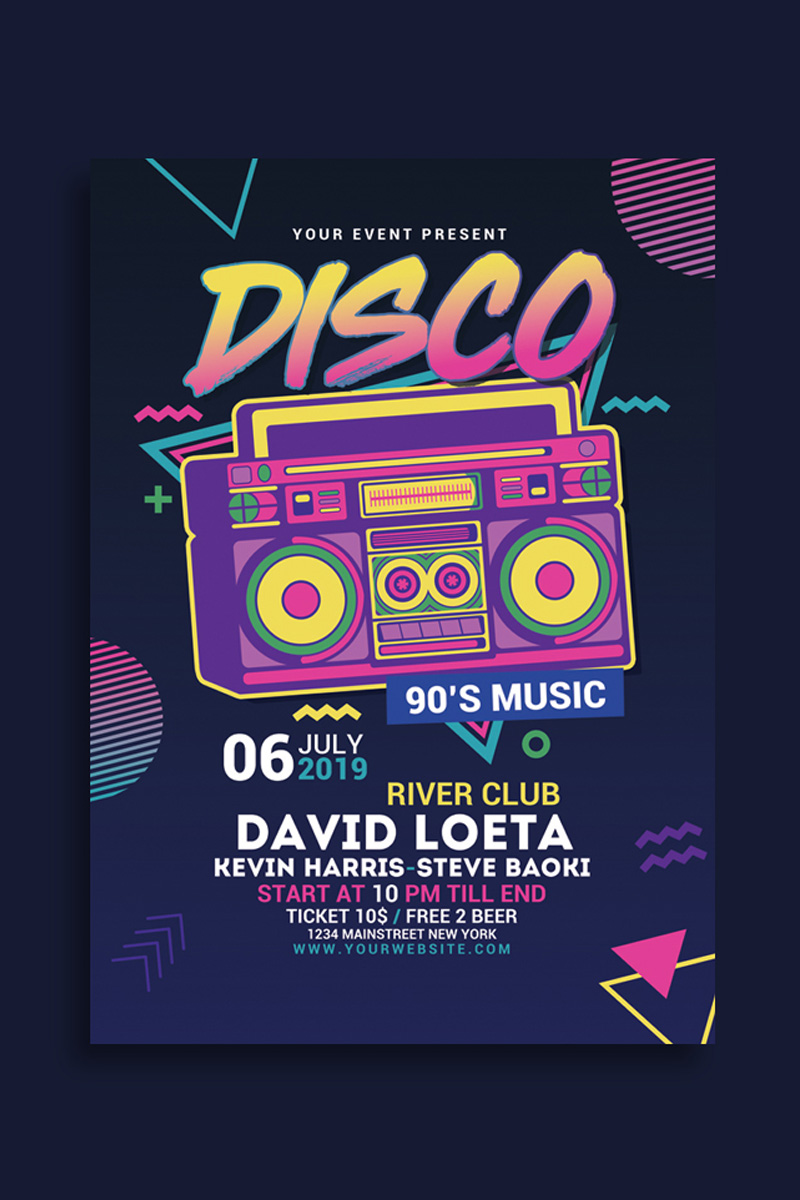 Download Фирменный стиль "Disco Retro Music Party - Corporate Identity Template" / Disco Retro Music Party - Corporate Identity Template - Фирменный стиль на тему графика 60's 70's 80s 90's black boombox box club color colorful cool dance disco eighties flash flyer girl invitation karaoke neon