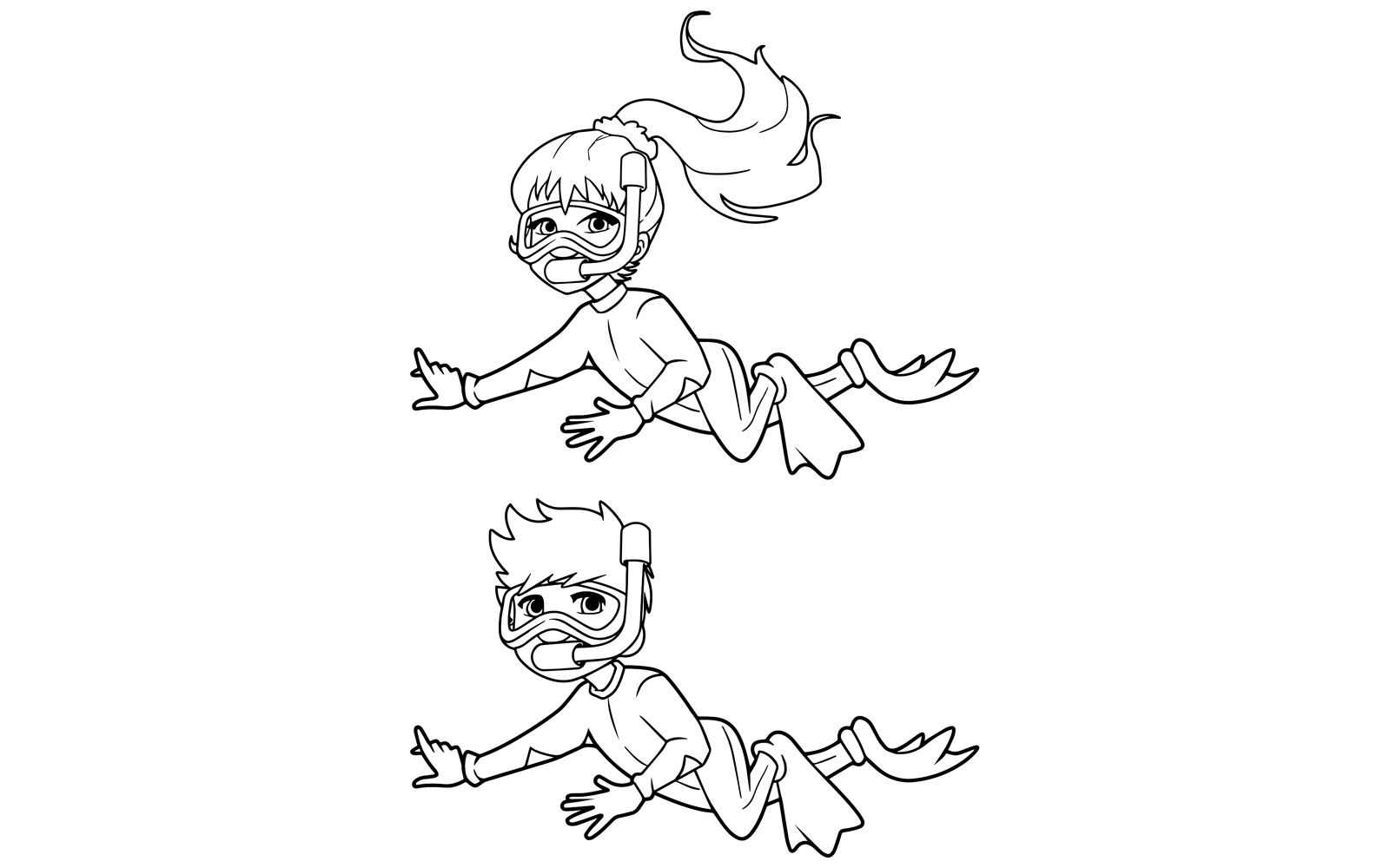 Download Иллюстрация "Diver Kids Line Art - Illustration" / Diver Kids Line Art - Illustration - Иллюстрация на тему графика boy,girl,children,diving,snorkeling,swimming,vacations,summer,suit,neoprene,mask,fins,hobby,friend,friends,kid,child,coloring,book,line art