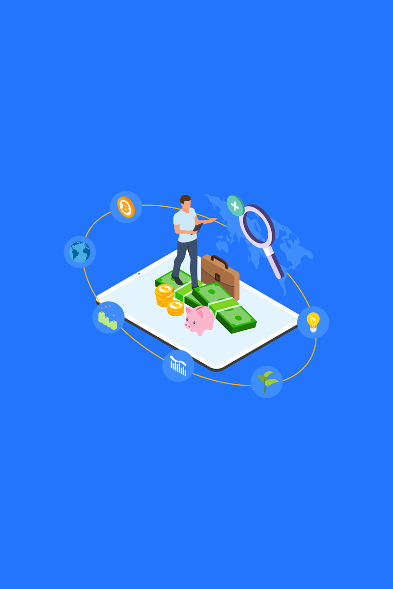 Download Иллюстрация "Diversify Investment 1 - Illustration" / Diversify Investment 1 - Illustration - Иллюстрация на тему графика isometric illustration blockchain platform finance report chart analysis growth device laptop bussiness strategy people design.