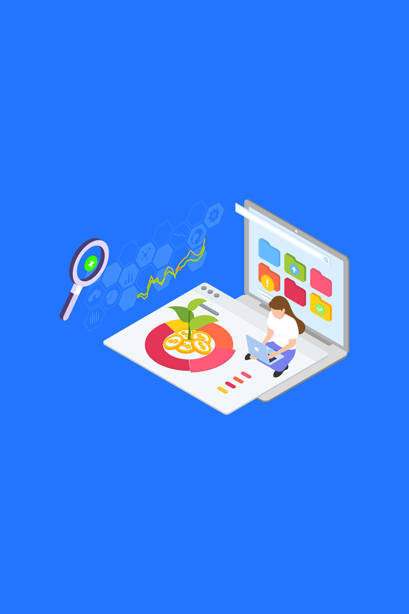 Download Иллюстрация "Diversify Investment 3 - Illustration" / Diversify Investment 3 - Illustration - Иллюстрация на тему графика isometric illustration blockchain platform finance report chart analysis growth device laptop bussiness strategy people design.