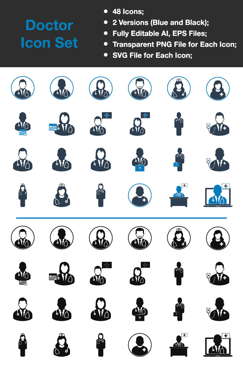 Download Набор иконок "Doctor - Premium Vector Icon Set" / Doctor - Premium Vector Icon Set - Набор иконок на тему графика doctor icon set vector sign symbol physician consultant medical care help service nurse male female online first aid patient stethoscope