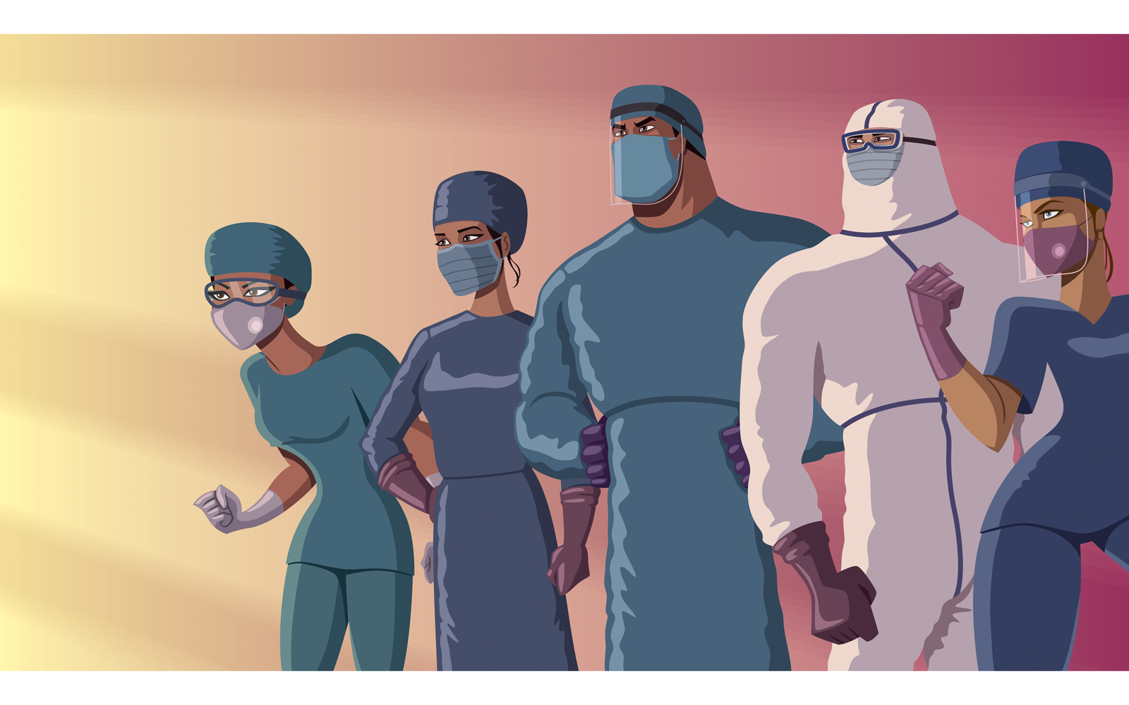Download Иллюстрация "Doctors Heroes Team Dusk - Illustration" / Doctors Heroes Team Dusk - Illustration - Иллюстрация на тему графика health care,worker,medical,doctor,medical doctor,physician,medical practitioner,professional,super,superhero,heroine,superheroine,power,comic book,comic,comic strip,medicine,virologist,surgeo