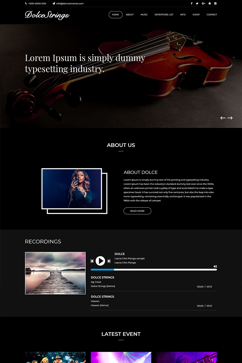 Download PSD шаблон "Dolcestrings - Music Band PSD Template" / Dolcestrings - Music Band PSD Template - PSD шаблон на тему музыкальная группа music band theme template psd photoshop