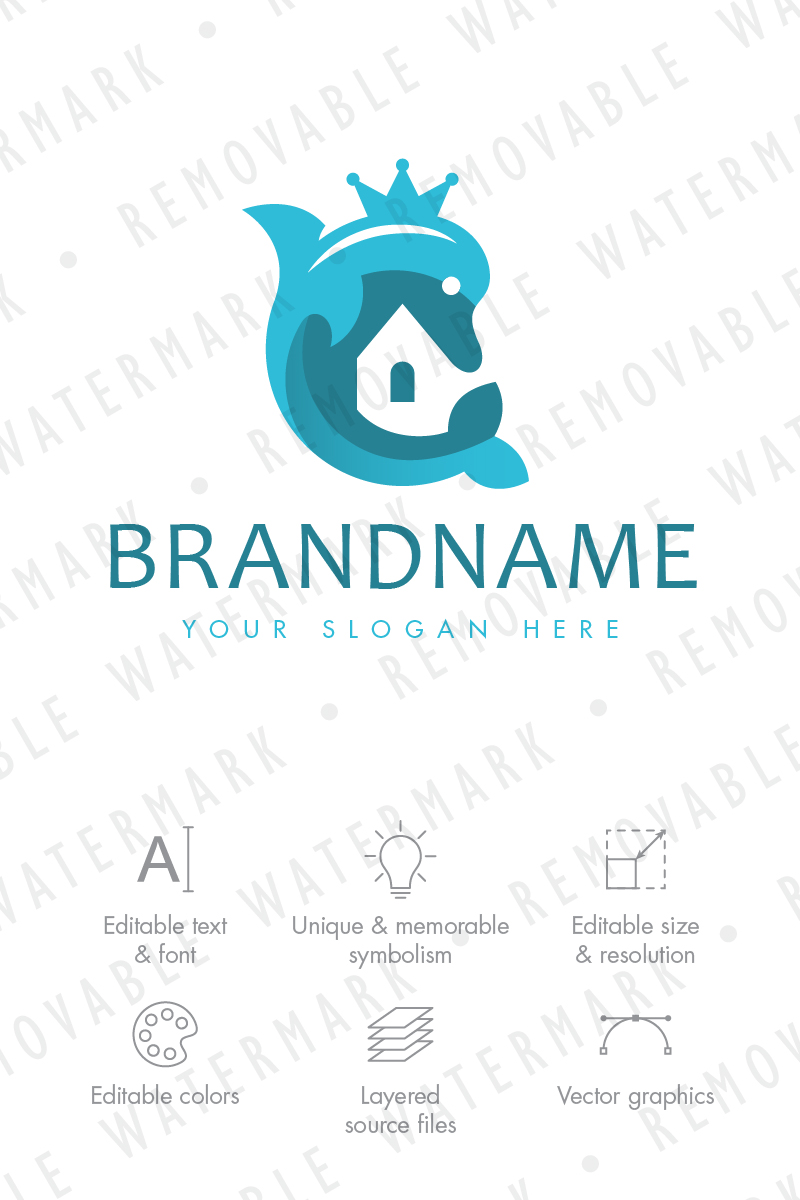 Download Шаблон логотипа "Dolphin Realty Logo Template" / Dolphin Realty Logo Template - Шаблон логотипа на тему графика hotel house ocean water realty resort spa fish beach sea dolphin coastal aquarium marine harbor logo design template property insurance