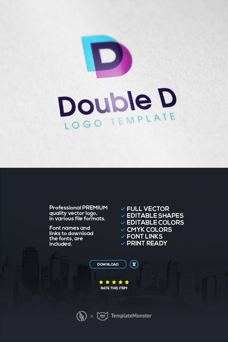 Download Шаблон логотипа "Double D Logo Template" / Double D Logo Template - Шаблон логотипа на тему графика d,d,double,neon,ovelay,creative,business,digital,logo,template,modern