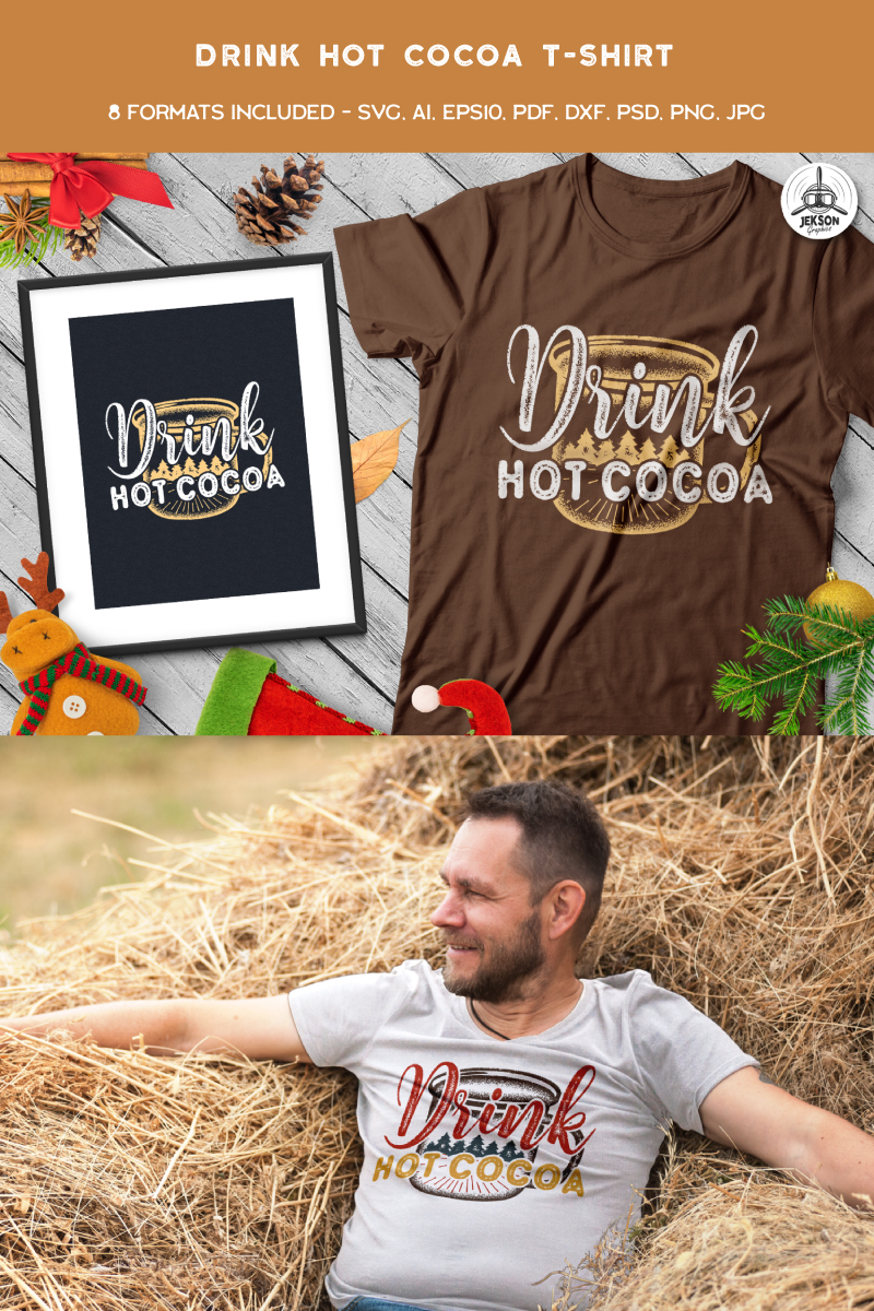 Download T-shirt Design "Drink Hot Cocoa, Christmas - T-shirt Design" / Drink Hot Cocoa, Christmas - T-shirt Design - T-shirt Design на тему графика christmas tshirt party holiday xmas vector logo print sweater new year ugly branding decoration template set svg bundle christmas badges
