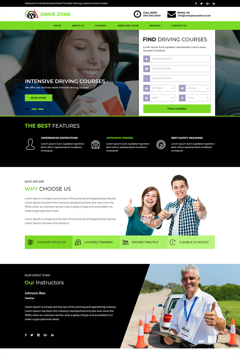 Download PSD шаблон "Drive Zone - Driving School PSD Template" / Drive Zone - Driving School PSD Template - PSD шаблон на тему графика driving school theme template psd photoshop