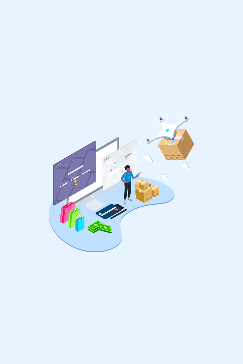 Download Иллюстрация "Drones Delivery Isometric 1 - T2 - Illustration" / Drones Delivery Isometric 1 - T2 - Illustration - Иллюстрация на тему графика isometric illustration blockchain platform finance report chart analysis growth device laptop bussiness strategy people design.