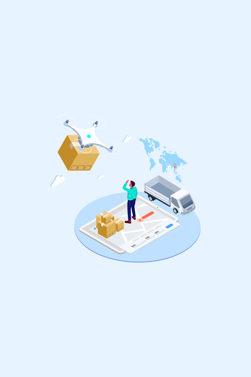 Download Иллюстрация "Drones Delivery Isometric 4 - T2 - Illustration" / Drones Delivery Isometric 4 - T2 - Illustration - Иллюстрация на тему графика isometric illustration blockchain platform finance report chart analysis growth device laptop bussiness strategy people design.