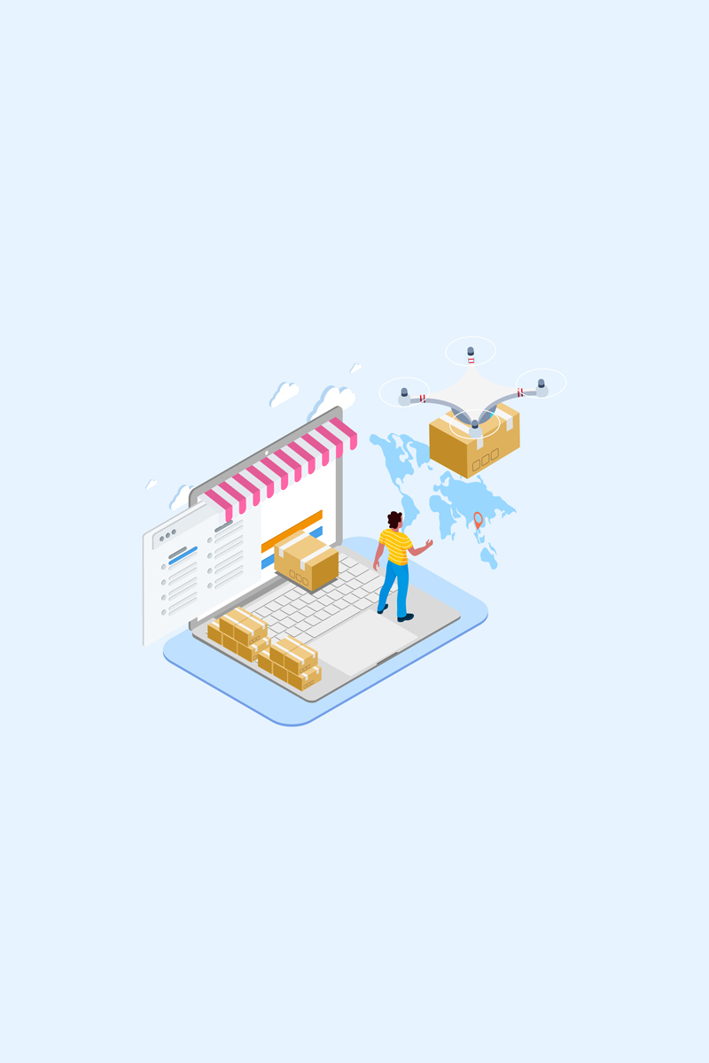Download Иллюстрация "Drones Delivery Isometric 5 - T2 - Illustration" / Drones Delivery Isometric 5 - T2 - Illustration - Иллюстрация на тему графика isometric illustration blockchain platform finance report chart analysis growth device laptop bussiness strategy people design.