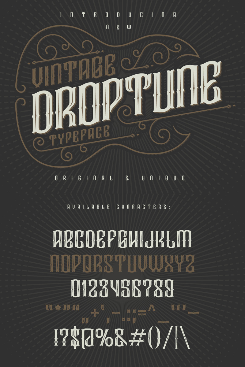 Download Шрифт "Droptune typeface Font" / Droptune typeface Font - Шрифт на тему графика type,font,typeface,vintage,gothic,style,abc,text,retro,typography,logo,modern,trendy,ornate,medieval,guitar,music,original,letters,dark