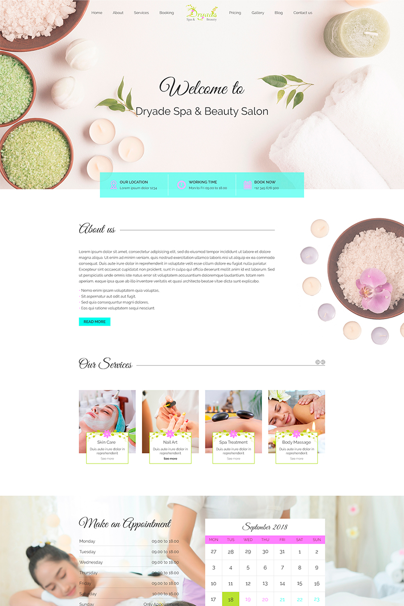 Download PSD шаблон "Dryade | Beauty & Spa PSD Template" / Dryade | Beauty & Spa PSD Template - PSD шаблон на тему салон красоты beauty spa wellness cosmetics hair nail salon make-up massage skincare health services business booking
