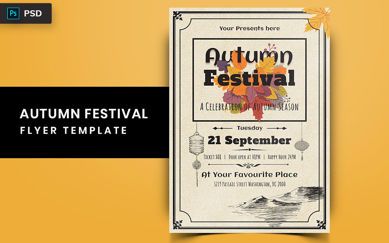 Download Фирменный стиль "Due - Autumn Festival Flyer - Corporate Identity Template" / Due - Autumn Festival Flyer - Corporate Identity Template - Фирменный стиль на тему графика mid,autumn,festival,flyer,fall,event,mockup,poster,banner,leaves,brochure,modern,a4,design,template
