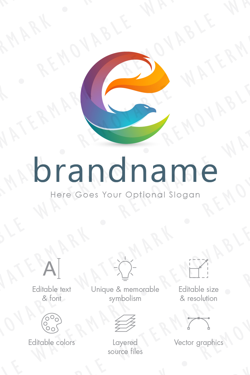 Download Шаблон логотипа "E Abstract Phoenix Logo Template" / E Abstract Phoenix Logo Template - Шаблон логотипа на тему графика phoenix e transformation power energy circle renewal rebirth resurrection fire wings bird legendary feather harmony moon logo design template abstract