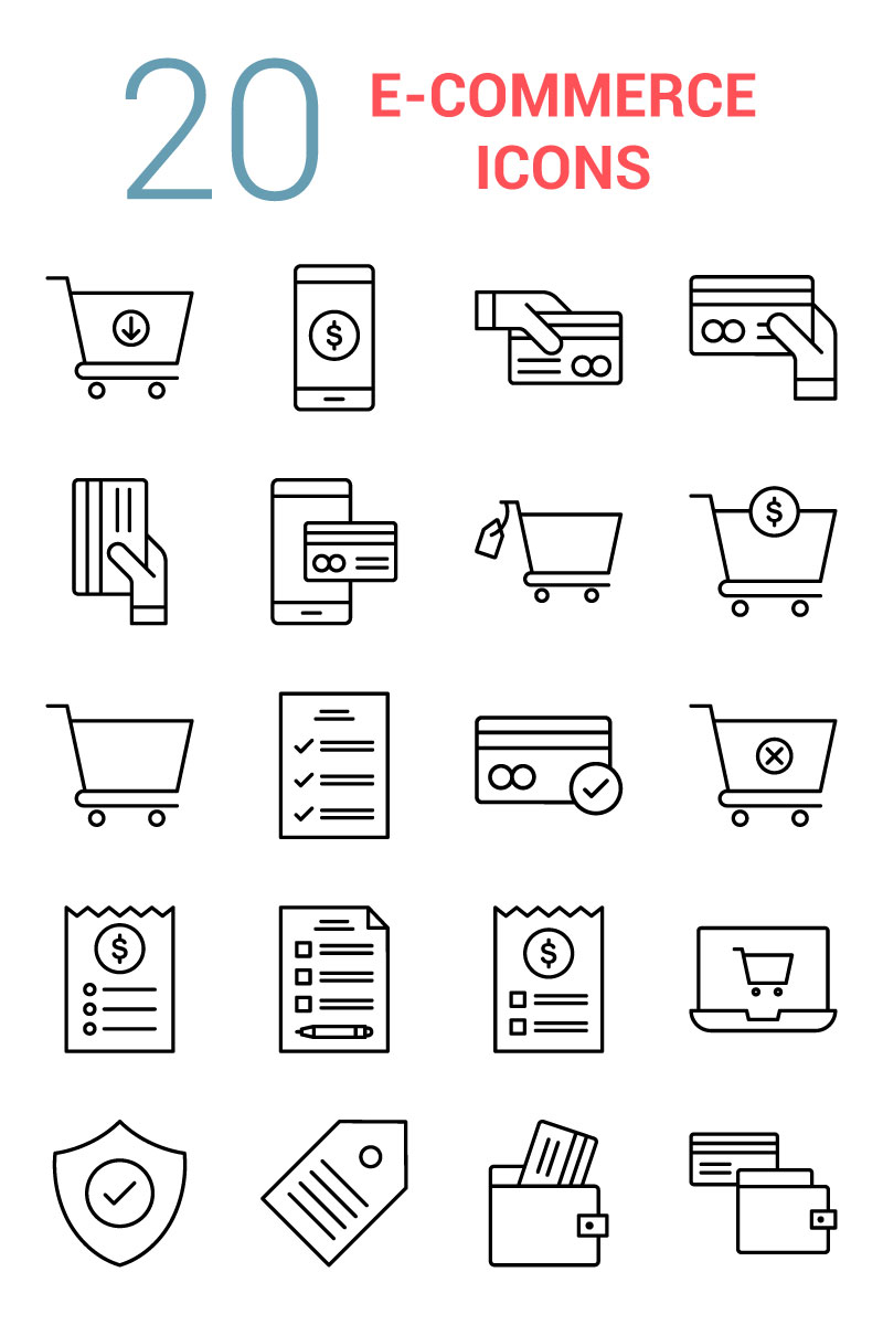 Download Набор иконок "E-Commerce Line Icon Set" / E-Commerce Line Icon Set - Набор иконок на тему графика call bill purchase payment credit card method shopping cart document checklist checkout invoice laptop tag wallet coupon secure sale