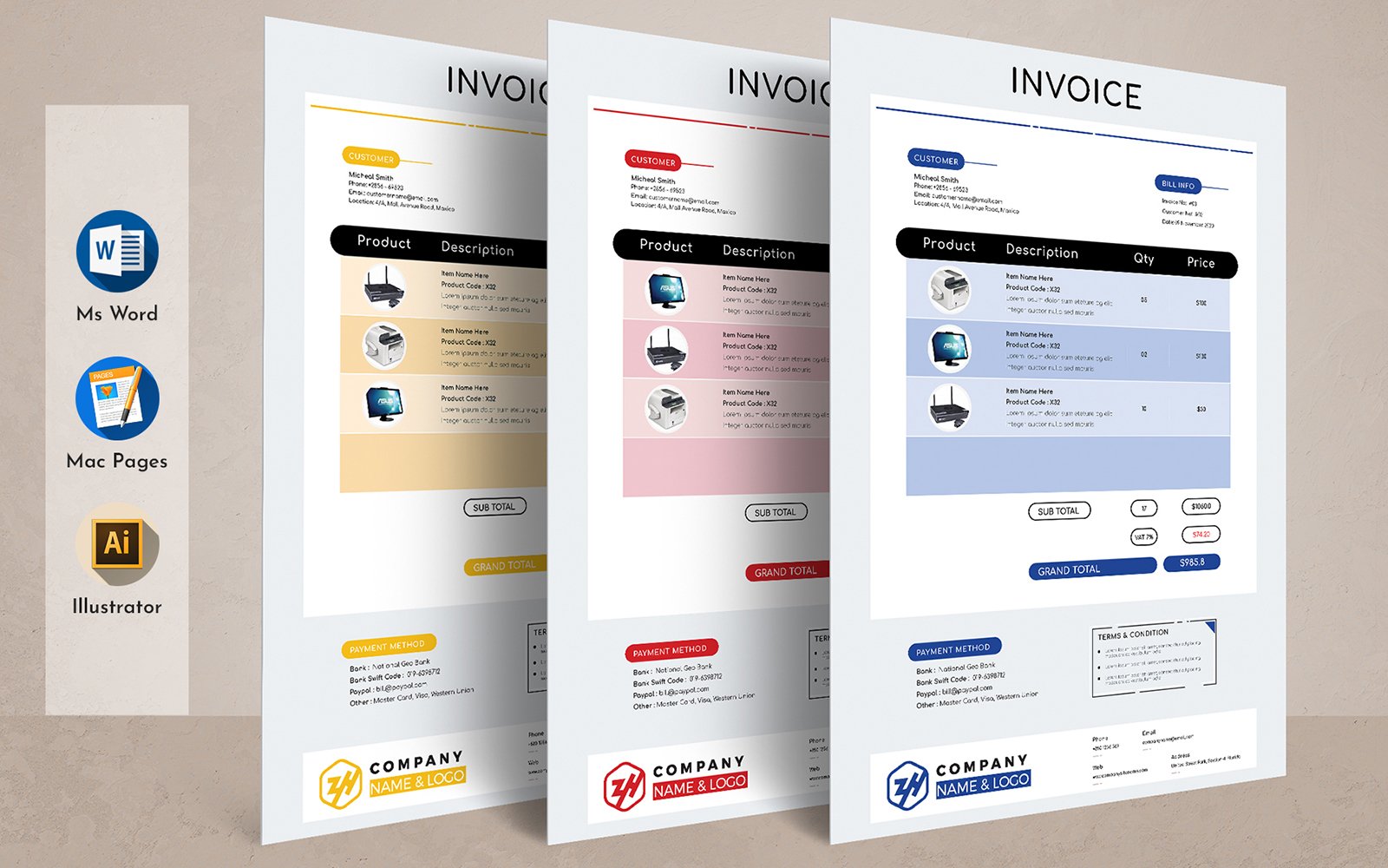 Download Фирменный стиль "E-commerce Word Apple Pages Invoice Bill - Corporate Identity Template" / E-commerce Word Apple Pages Invoice Bill - Corporate Identity Template - Фирменный стиль на тему графика invoice template,ms word,cash memo,modern,apple pages,ecommerce,quotation,best invoice,proforma,sales template,top factuur,bill,corporate,rechnung,invoice design,sample,editable,simple,clean,