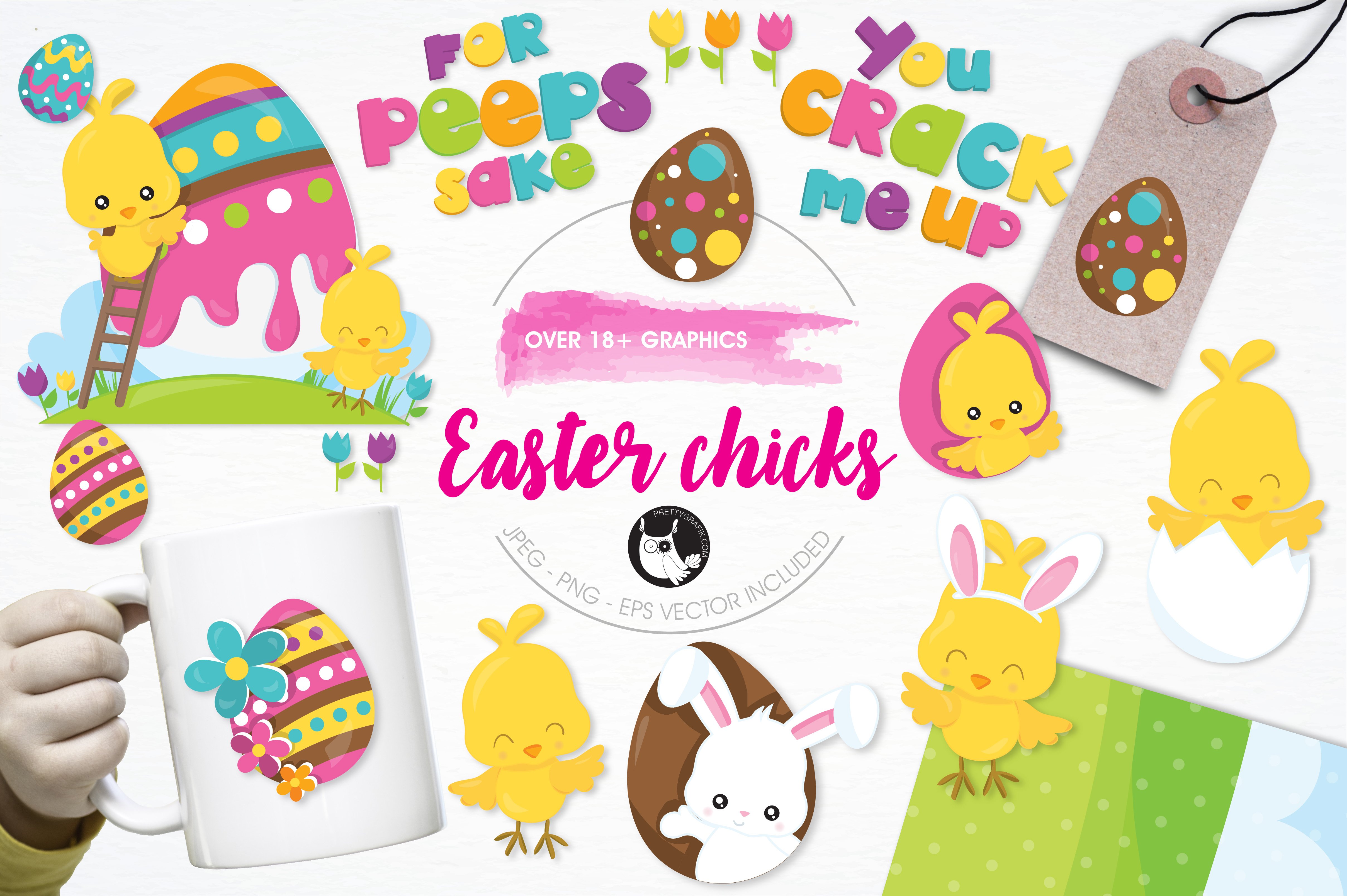 Download Vector "Easter chicks illustration pack - Vector Image" / Easter chicks illustration pack - Vector Image - Vector на тему графика illustration,vector,graphics,clipart,clip art,icons,easter,chocolate,tulip,chicken,eps,egg,prettygrafik,chicks