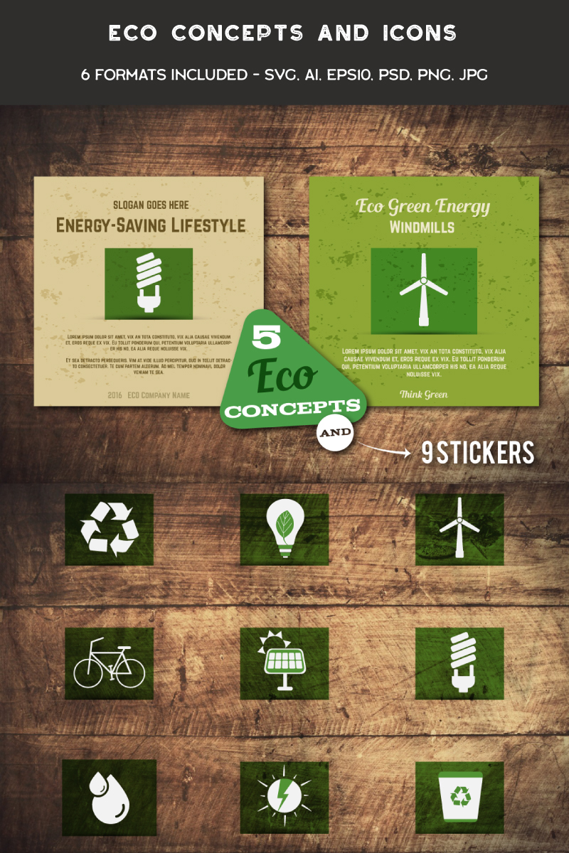 Download Иллюстрация "Eco Cards and Icons - Illustration" / Eco Cards and Icons - Illustration - Иллюстрация на тему графика eco natural card icon set template bio green concept vector brochure flyer sticker poster label