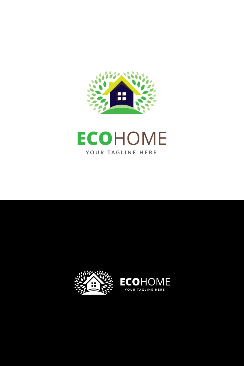 Download Шаблон логотипа "Eco Home Logo Template" / Eco Home Logo Template - Шаблон логотипа на тему графика blue brand builder builders building construction corporate eco ecological ecology evergreen green leaf group hill home house housing leafs natural