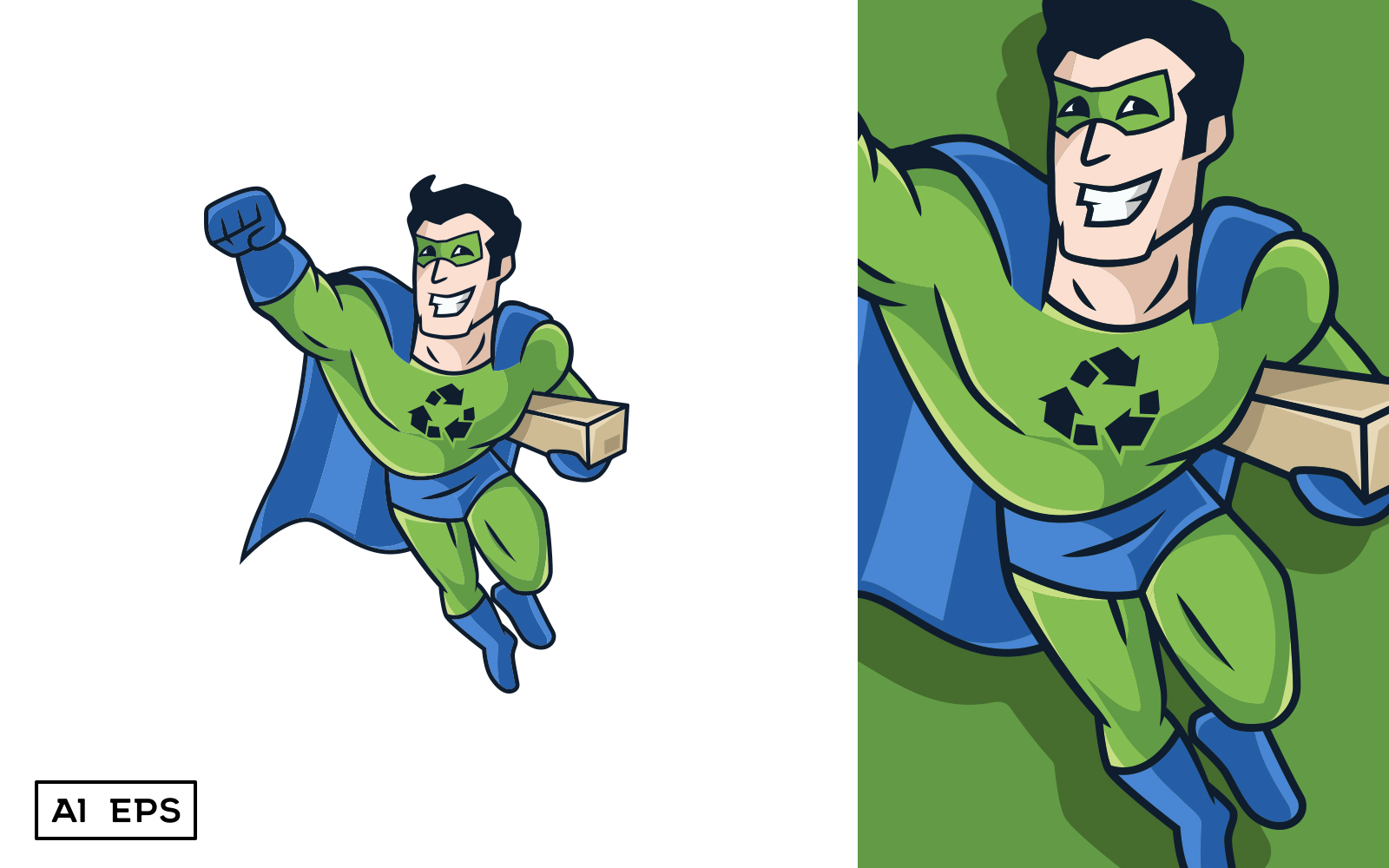 Download Шаблон логотипа "Eco-Man Mascot" / Eco-Man Mascot - Шаблон логотипа на тему графика eco man,environment,nature,eco friendly,recycle,hero,super hero,card board,recycling,zero waste,human,reuse,sustainable,plastic,eco,green,earth,pollution,comics,mascot