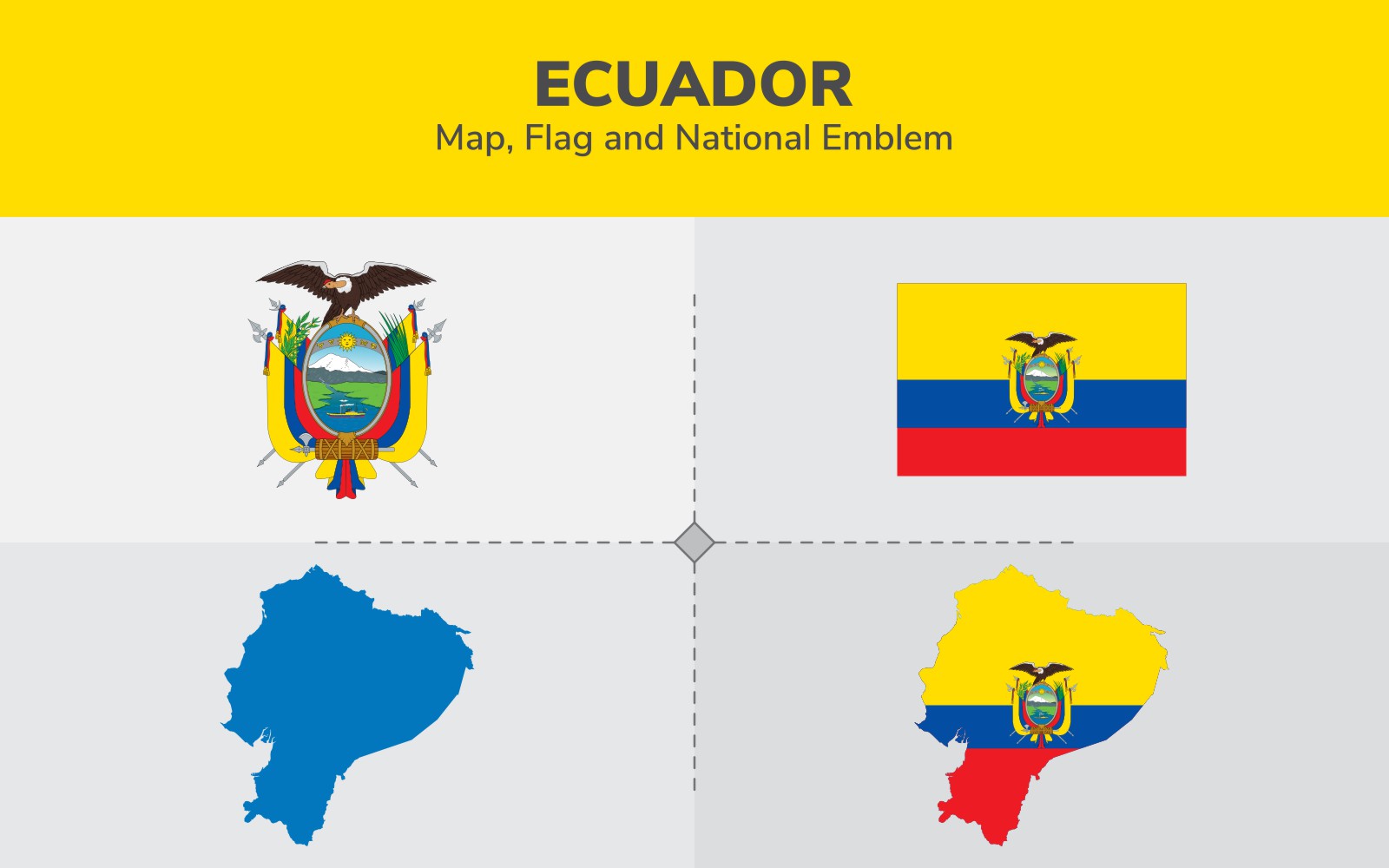 Download Иллюстрация "Ecuador Map, Flag and National Emblem - Illustration" / Ecuador Map, Flag and National Emblem - Illustration - Иллюстрация на тему графика continents,countries,map,political map,traveling,vector,emblem,national,flag,coat,arms,country,symbol,nations,state,sign,nation,badge,symbolic object,europe