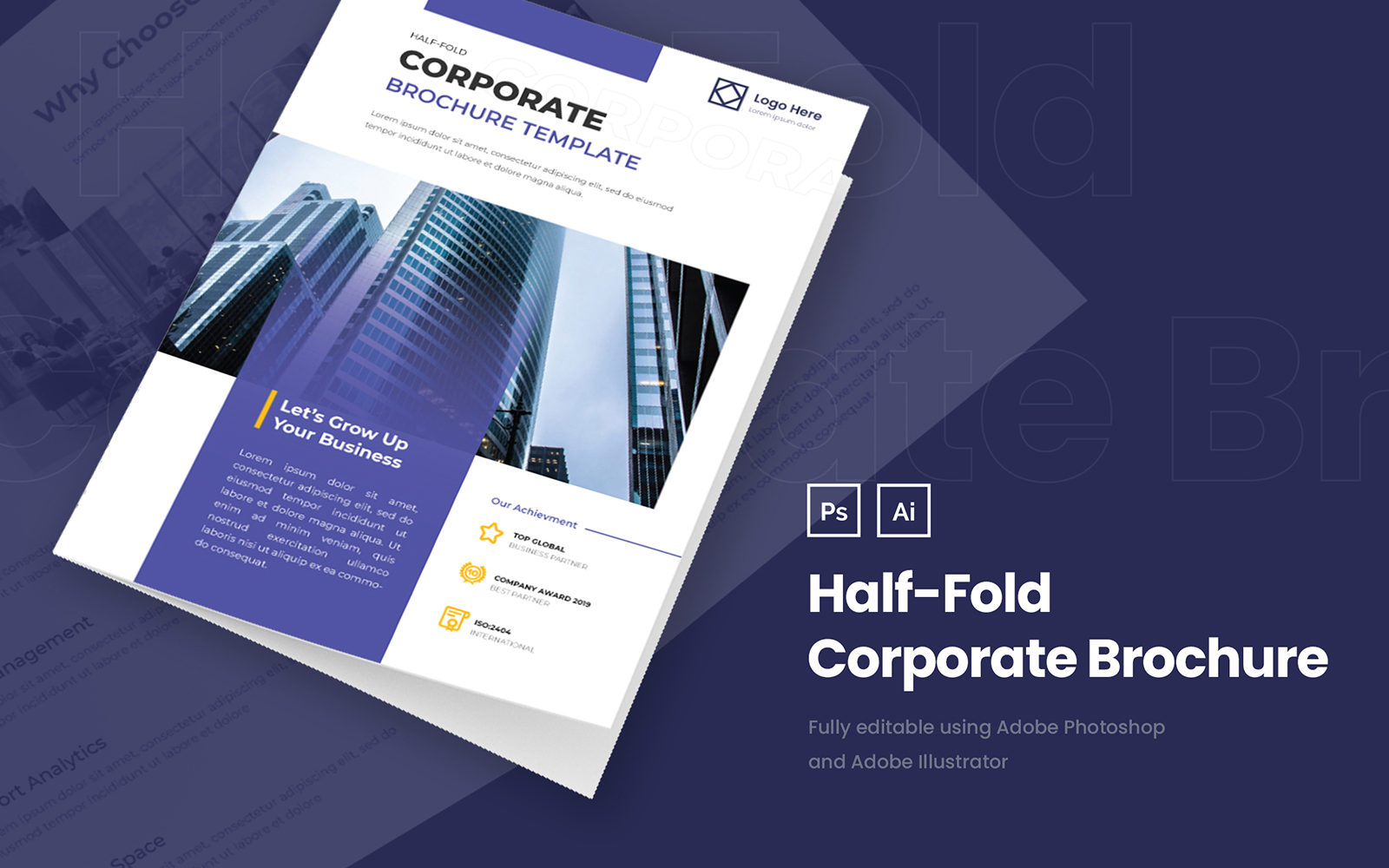 Download Фирменный стиль "Elegant Brochure Half-fold - Corporate Identity Template" / Elegant Brochure Half-fold - Corporate Identity Template - Фирменный стиль на тему графика elegant,modern,company,corporate,professional,brochure,trifold,entrepreneur,business,illustrator,photoshop,service,promotion,print,minimal,elegant corporate brochure,elegant company,professio