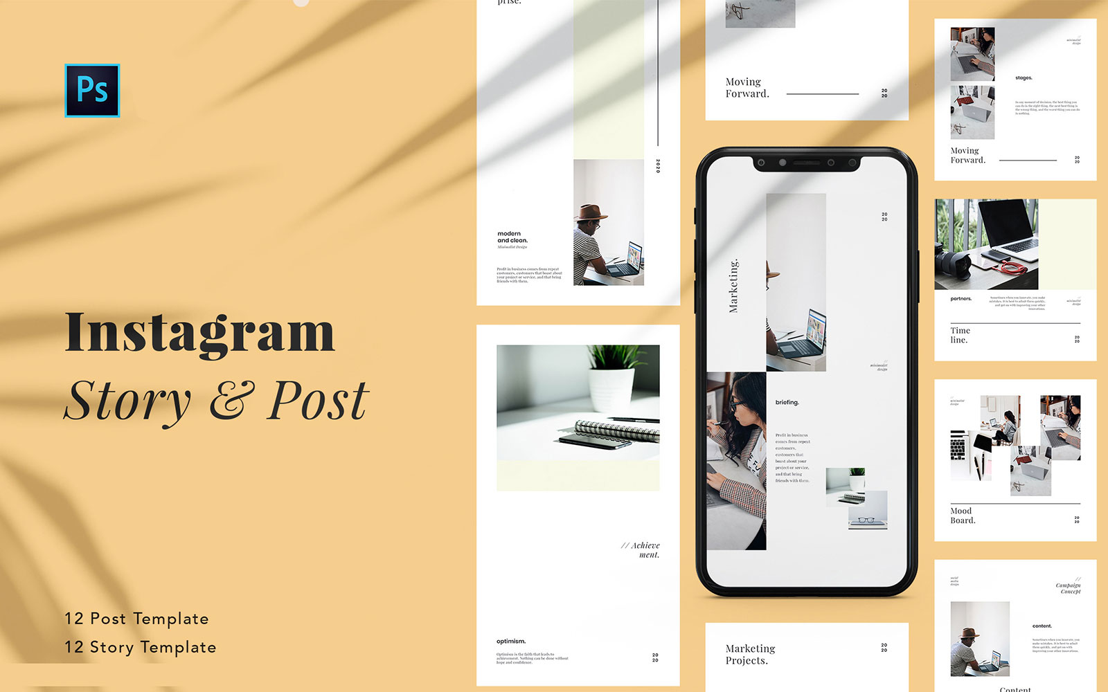Download Шаблон для соцсетей "Elegant Business Instagram Story & Post Photoshop Social Media Template" / Elegant Business Instagram Story & Post Photoshop Social Media Template - Шаблон для соцсетей на тему графика corporate instagram,company instagram,instagram for company,business,brand,lifestyle,minimalist,modern,elegant,simple,creative,template,instagram post