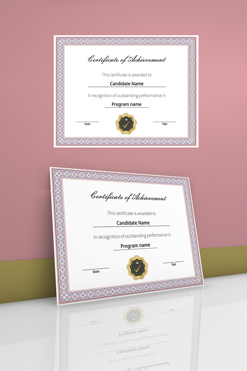 Download Шаблон сертификата "Elegnat and simple Certificate of achievement Certificate Template" / Elegnat and simple Certificate of achievement Certificate Template - Шаблон сертификата на тему графика certificate award completion acheivement