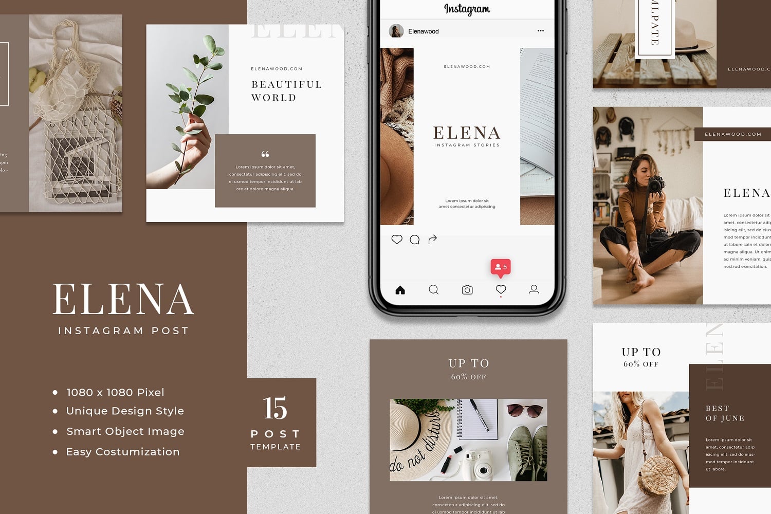 Download Шаблон для соцсетей "Elena - Fashion Instagram Post Template for Social Media" / Elena - Fashion Instagram Post Template for Social Media - Шаблон для соцсетей на тему графика creative,instagram,post,feed,fashion,feminime,stylish,lifestyle,layout,unique,minimal,whitespace,modern,clean,elegant