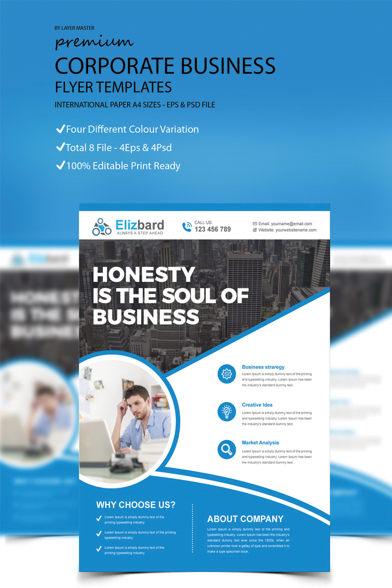 Download Фирменный стиль "Elizbard Business Flyer - Corporate Identity Template" / Elizbard Business Flyer - Corporate Identity Template - Адаптивный Фирменный стиль на тему графика a4,business,flyer,clean,corporate,customize,design,easy,editable,logo,free,fonts,letter,magazine,modern,photoshop,poster