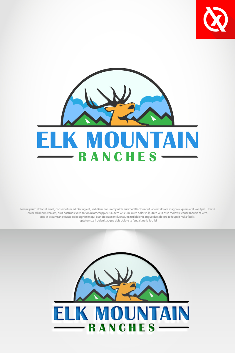 Download Шаблон логотипа "Elk Mountain Ranches Agro Design Logo Template" / Elk Mountain Ranches Agro Design Logo Template - Шаблон логотипа на тему графика deer,elk,reindeer,roe,wild,travel,agriculture,farmer,harvest,leaf,natural,organic,plant,ranches,catle,cow,nature,mountain,hill,sky