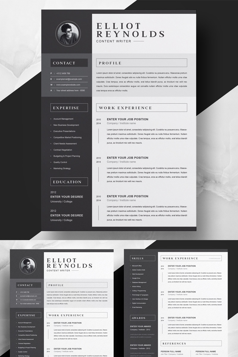 Download Резюме "Elliot Resume Template" / Elliot Resume Template - Резюме на тему графика page resume 2 clean cv cover letter design template illustrator eps mac pages microsoft word modern photoshop psd professional