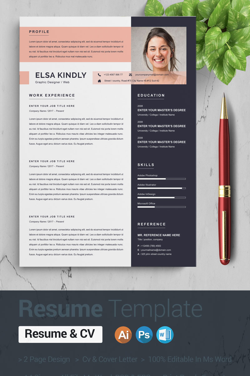 Download Резюме "Elsa Resume Template" / Elsa Resume Template - Резюме на тему графика 2 page a4 clean cv design elegant resume female feminine infographic letter minimalist modern portfolio professional indesign minimal pages