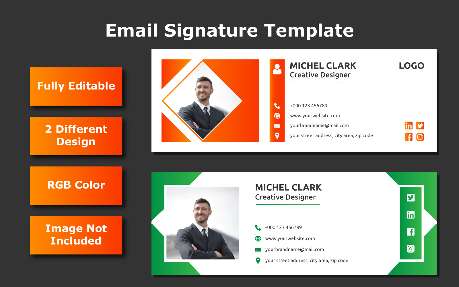 Download Vector "Email Signature Template - Vector Image" / Email Signature Template - Vector Image - Vector на тему бизнес и услуги information,signatures,communication,minimal,graphic,card,picture,profile,gradient,company,vector,professional,flat,modern,template,office,photo,icons,message,email