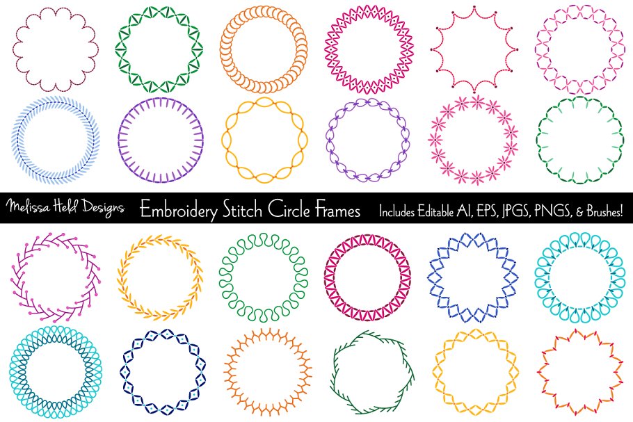 Download Pattern "Embroidery Stitch Circle Frames Pattern" / Embroidery Stitch Circle Frames Pattern - Pattern на тему графика retro,vintage,stripe,trim,pattern,fabric,textile,brush,brushes,seamless,trimming,embroidery,hand drawn,stitching,embroidered,sewing,stitches,decorative,thread,border