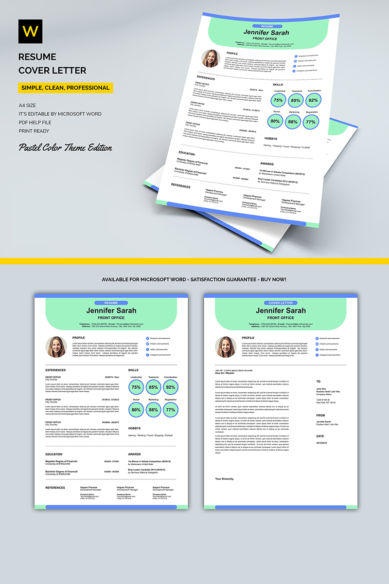 Download Резюме "Emerald - Resume Template" / Emerald - Resume Template - Резюме на тему графика resume template cv coverletter microsoftword creative design clean professional curriculumvitae modern simple word job