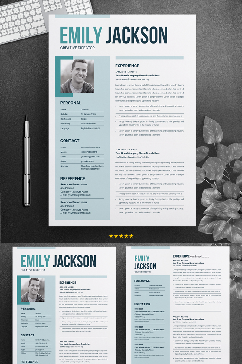 Download Резюме "Emily Jacsion Word Resume Template" / Emily Jacsion Word Resume Template - Резюме на тему графика resume template modern professional creative design word teacher templates simple clean two page free microsoft mac pages photoshop psd illustrator