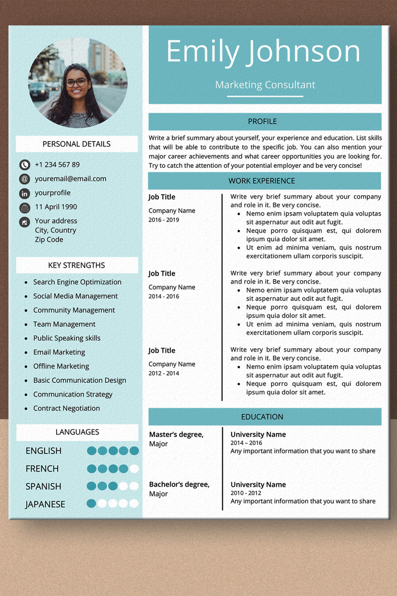 Download Резюме "Emily Johnson Ms Word Resume Template" / Emily Johnson Ms Word Resume Template - Резюме на тему графика creative,word,marketing,pr,business,project,manager,cyan,cv,modern,professional,minimalist,2020,lebenslauf,cover letter,curriculum vitae,resume template,cv template