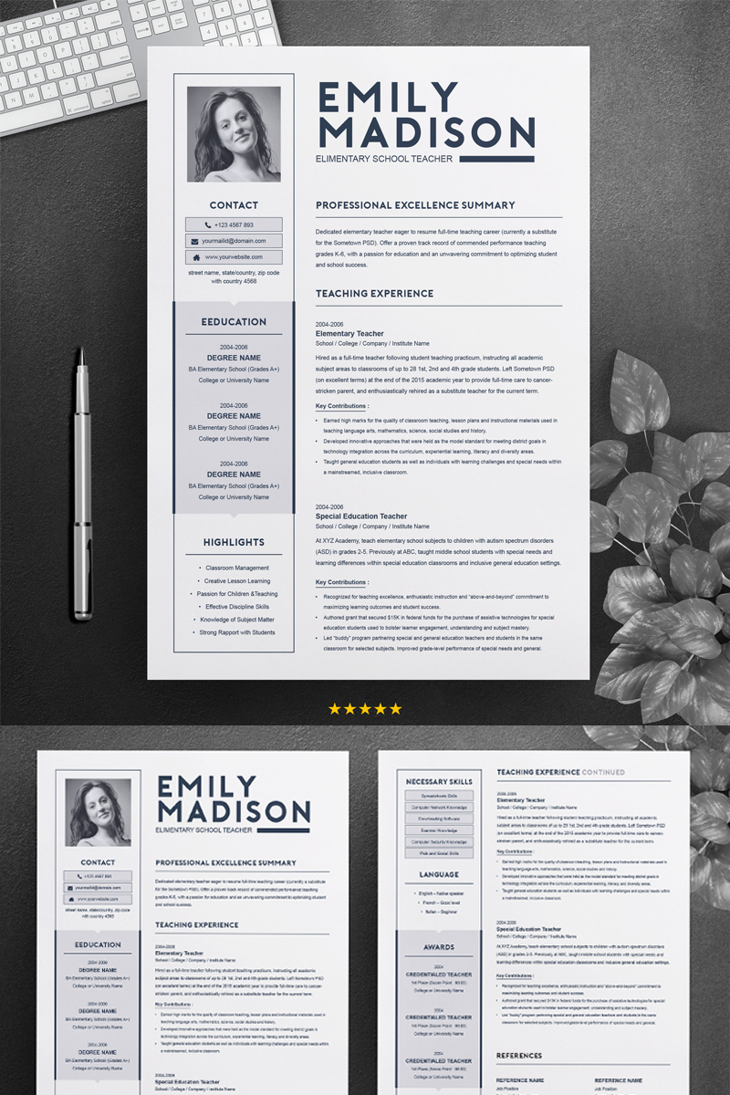 Download Резюме "Emily Madison Resume Template" / Emily Madison Resume Template - Резюме на тему графика resume template cv professional free apple page clean curriculum vitae with photo psd word microsoft mac pages photoshop illustrator eps