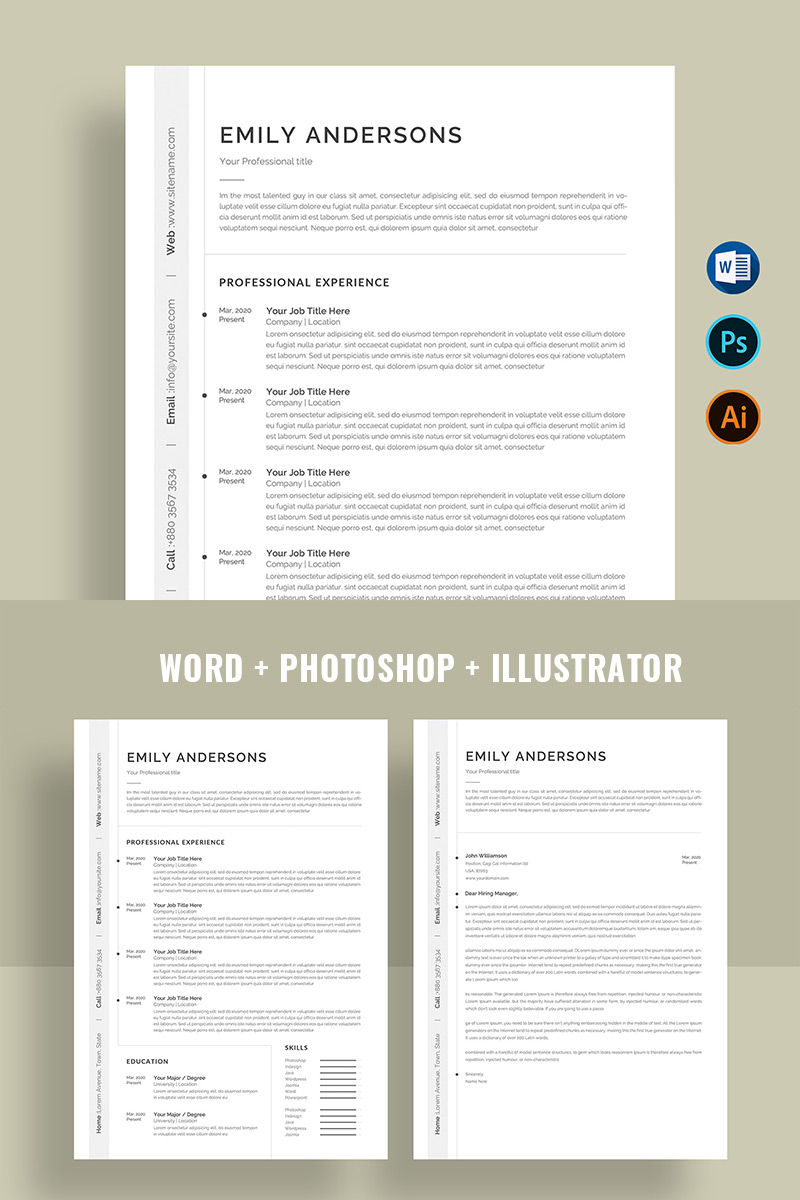 Download Резюме "Emily Resume Template" / Emily Resume Template - Резюме на тему графика a4 clean cv design elegant resume female infographic letter minimalist modern portfolio professional indesign minimal pages word template