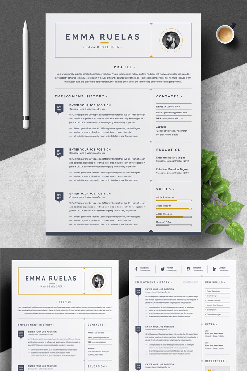 Download Резюме "Emma Resume Template" / Emma Resume Template - Резюме на тему графика 01. multi page resume main (source) files. 02. 4 file formats (ms word docx photoshop psd illustrator eps iwork apple