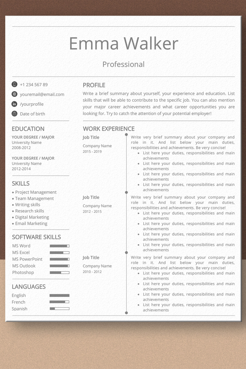 Download Резюме "Emma Walker MS Word Resume Template" / Emma Walker MS Word Resume Template - Резюме на тему графика resume,template,cv,professional,modern,minimalist,european,creative,one,two,page,references,salary,expectations,icon,pack,cover letter,resume template,cv template,curriculum vitae
