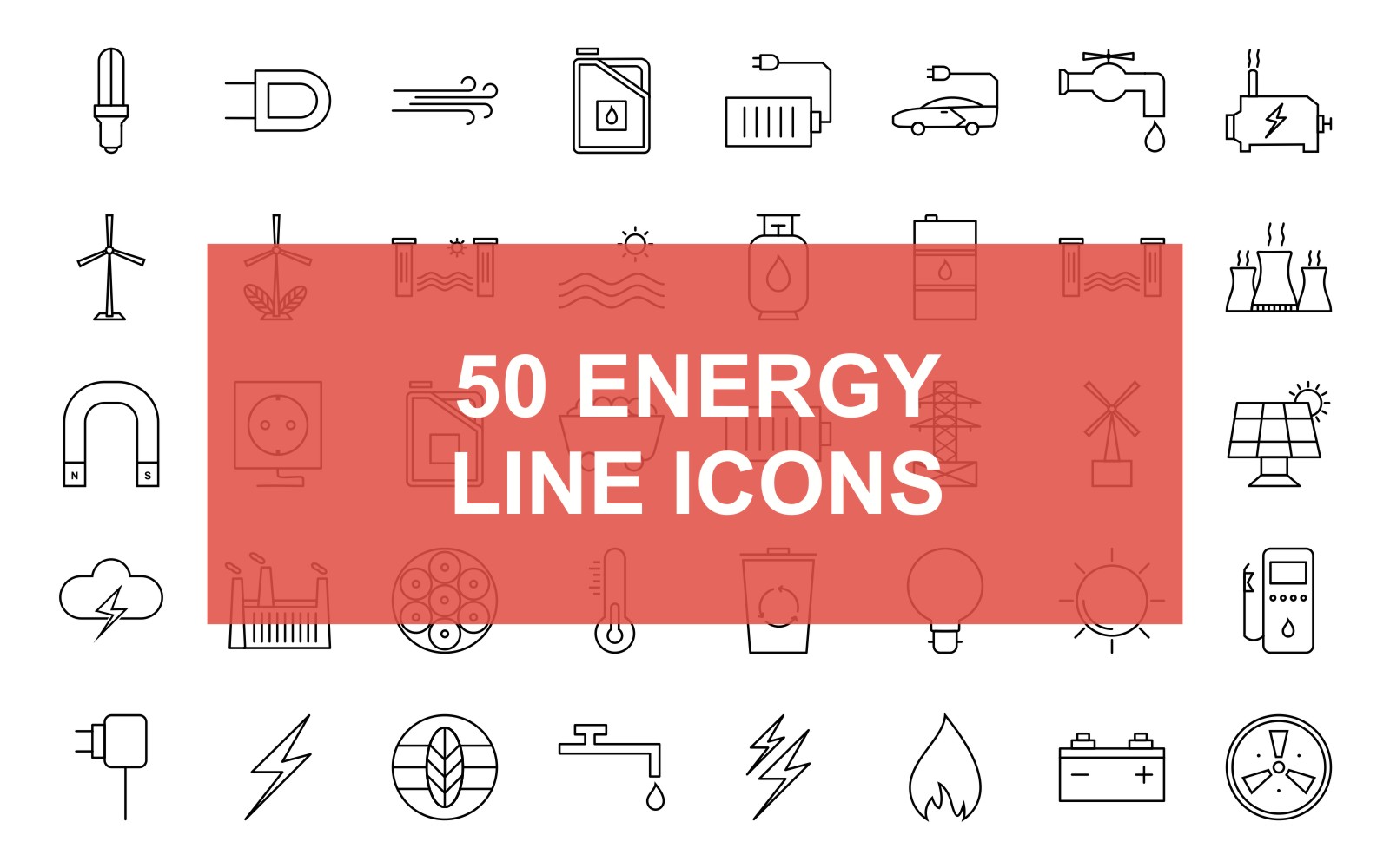 Download Набор иконок "Energy Line Black Icon Set" / Energy Line Black Icon Set - Набор иконок на тему графика energy,saver,water,windmill,lightening,socket,battery,sun,solar,panel,plug,wind,petrol,cell,and,car,tap,engine,turbine,green